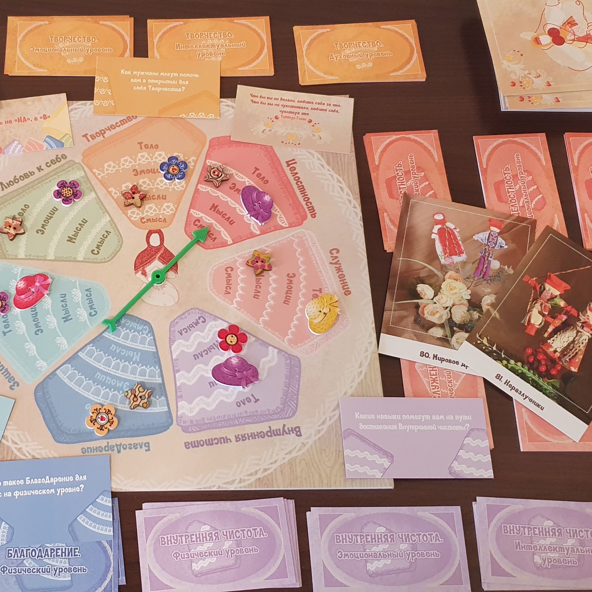 В основе игры авторская колода метафорических карт "Магия народной куклы". А еще в конце игры участницы обязательно создадут свою маленькую куколку-помощницу, с которой можно будет и поговорить, и посоветоваться, и пожаловаться, и порадоваться.