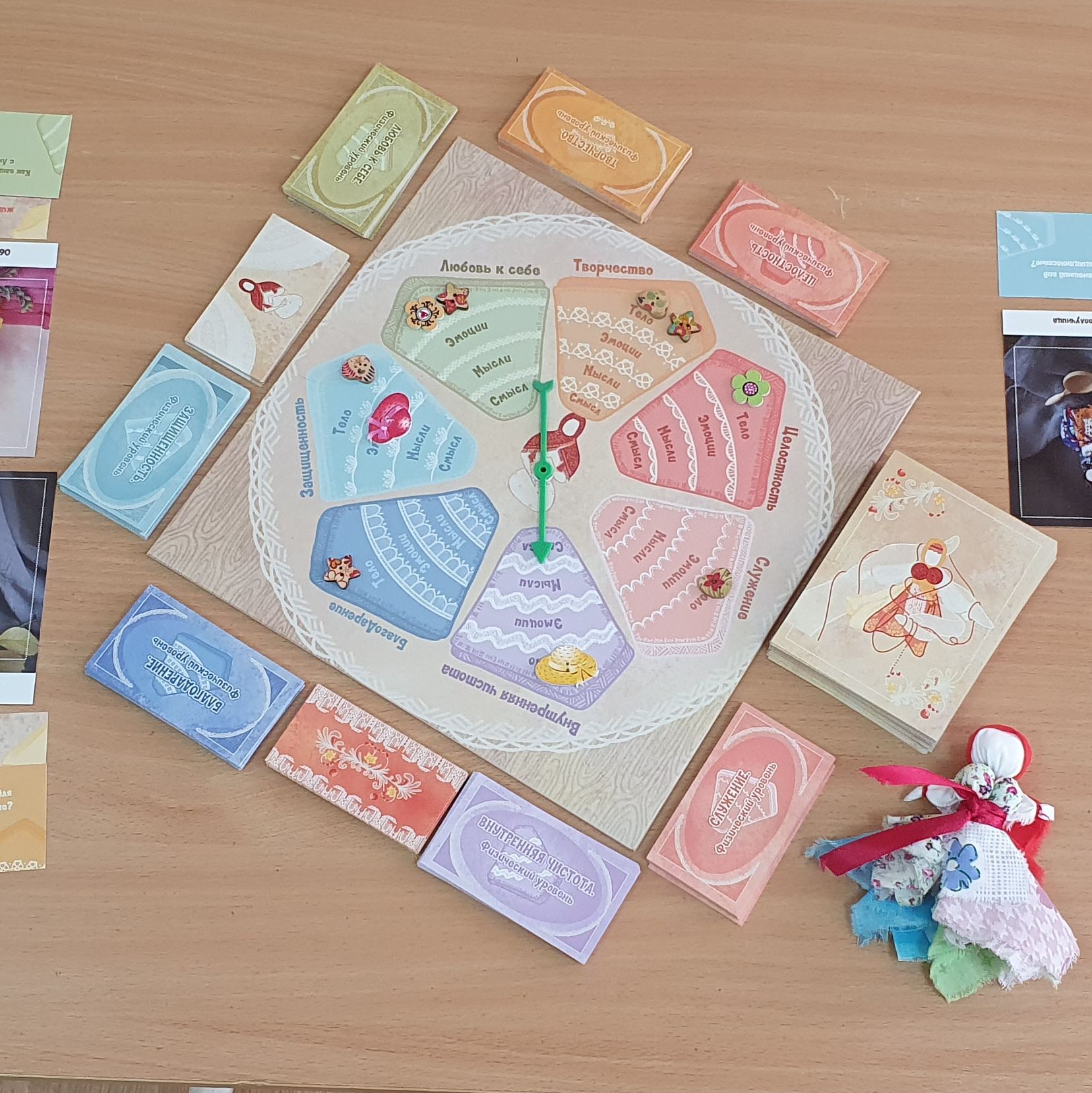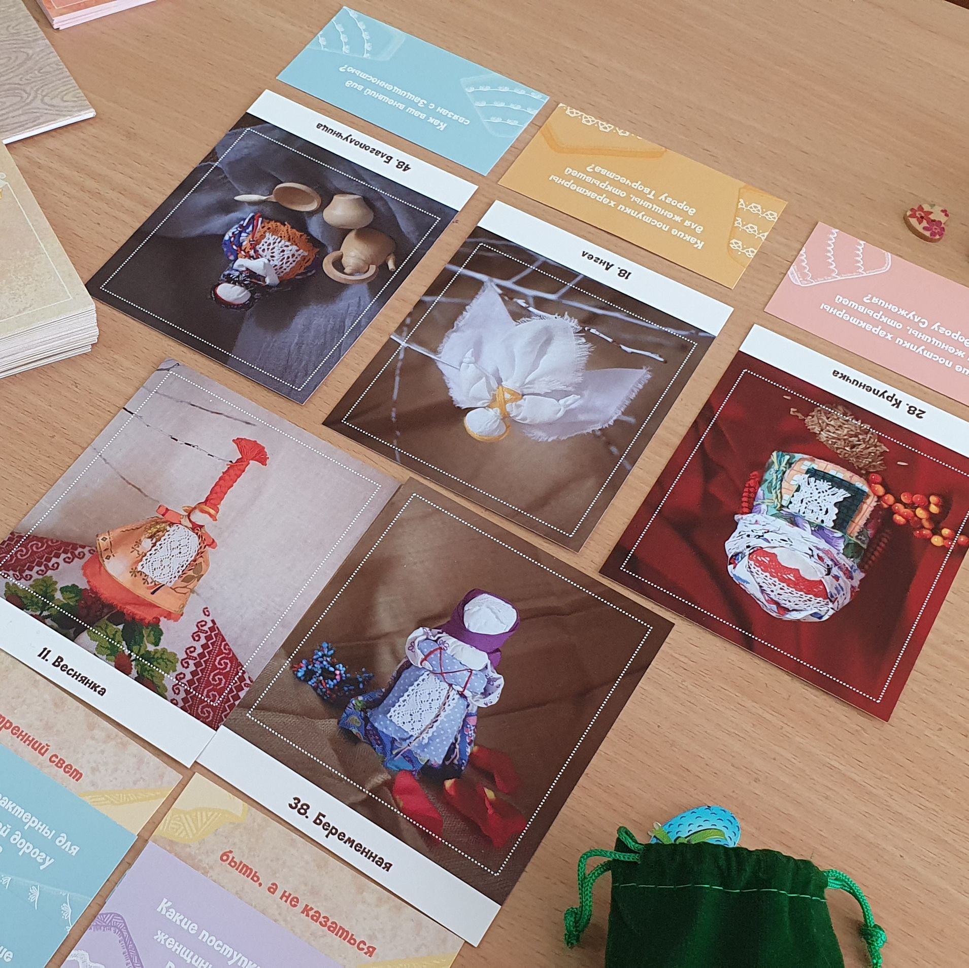 В основе игры авторская колода метафорических карт "Магия народной куклы". А еще в конце игры участницы обязательно создадут свою маленькую куколку-помощницу, с которой можно будет и поговорить, и посоветоваться, и пожаловаться, и порадоваться.